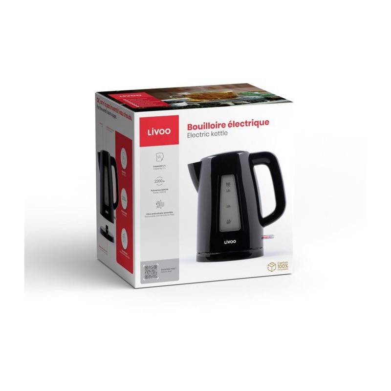 Bouilloire - LIVOO - DOD184N - 2200 W - 1,7 L - Socle 360° - Noir