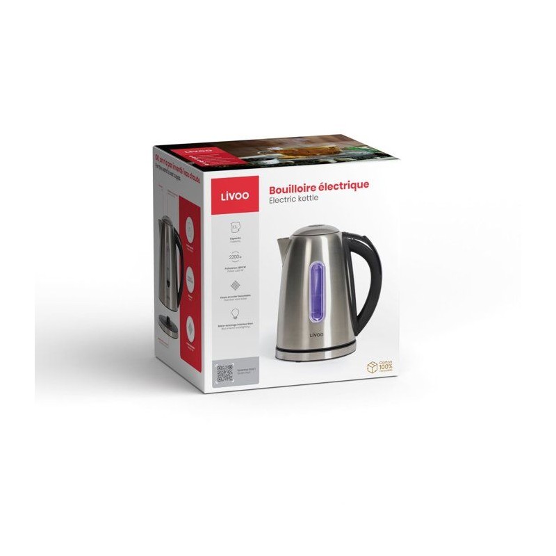 Bouilloire - LIVOO - DOD195 - 2200 W - 1,7 L - Socle 360° - Acier inoxydable