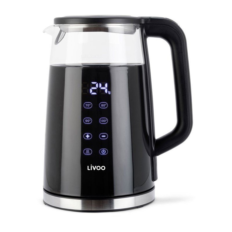 Modernité et précision avec la bouilloire digitale LIVOO DOD198. Réglez la température de 40 a 100 °C par palier de 5 °C grâce a son panneau tactile. Affichage clair, 4 sélections de température et fonction maintien au chaud pour un confort optimal. Corps en verre transparent avec protection et design élégant pour votre cuisine.