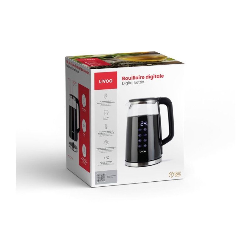 Bouilloire digitale - LIVOO - DOD198 - 2200 W - 1,7 L - Verre transparent