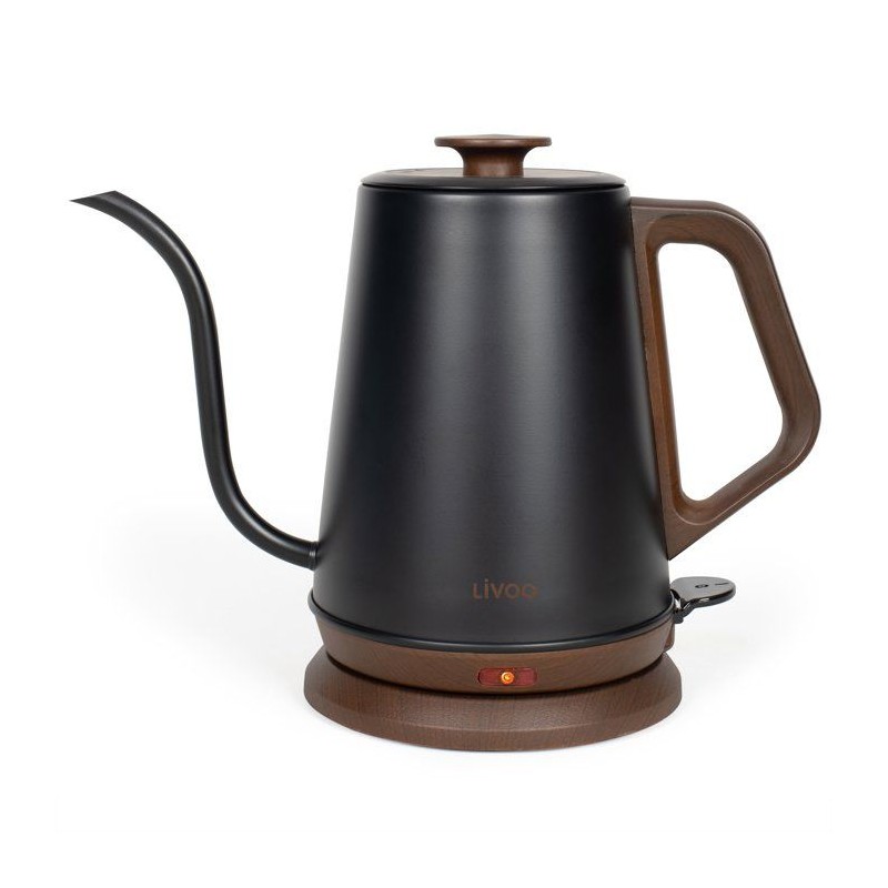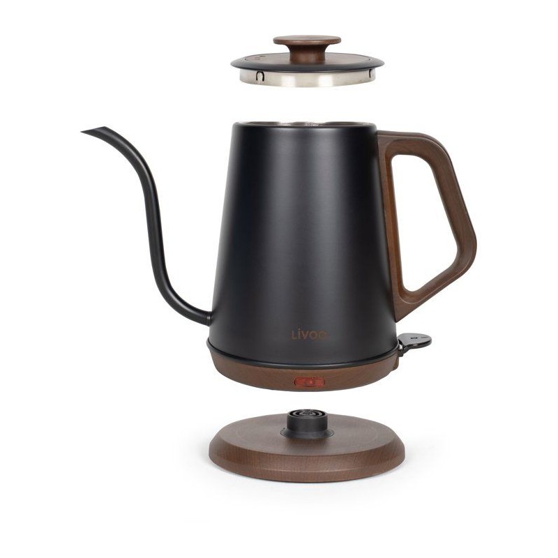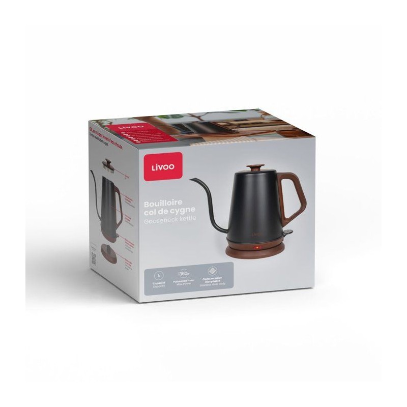 Bouilloire col de cygne - LIVOO - DOD206 - 1360 W -1 L - Socle 360° - Noir / Marron