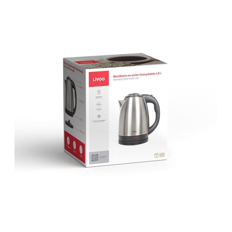 Bouilloire - LIVOO - DOD207 - 1500 W - 1,8 L - Socle 360° - Acier inoxydable