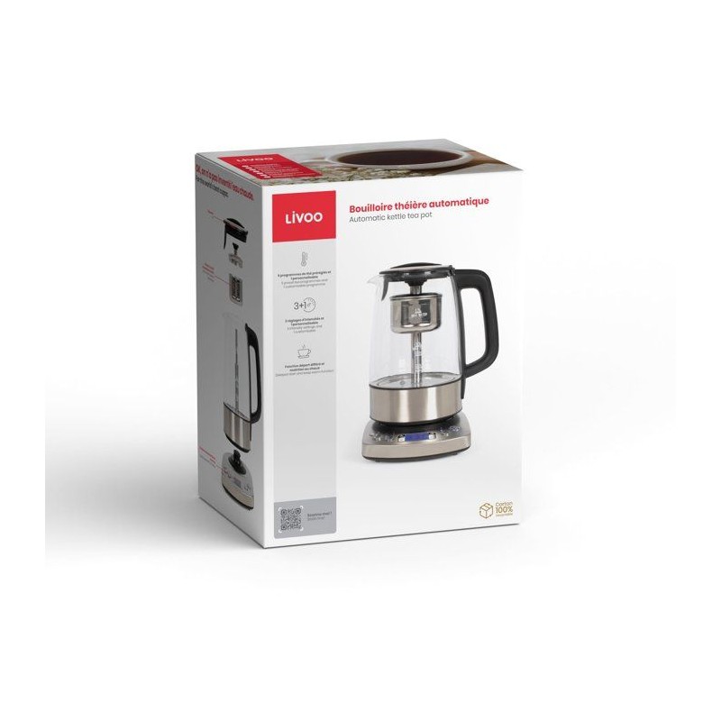 Bouilloire automatique - LIVOO - DOD209 - 2200 W - 1,7 L - 3 modes d'infusion préréglés - Verre / Acier inoxydable