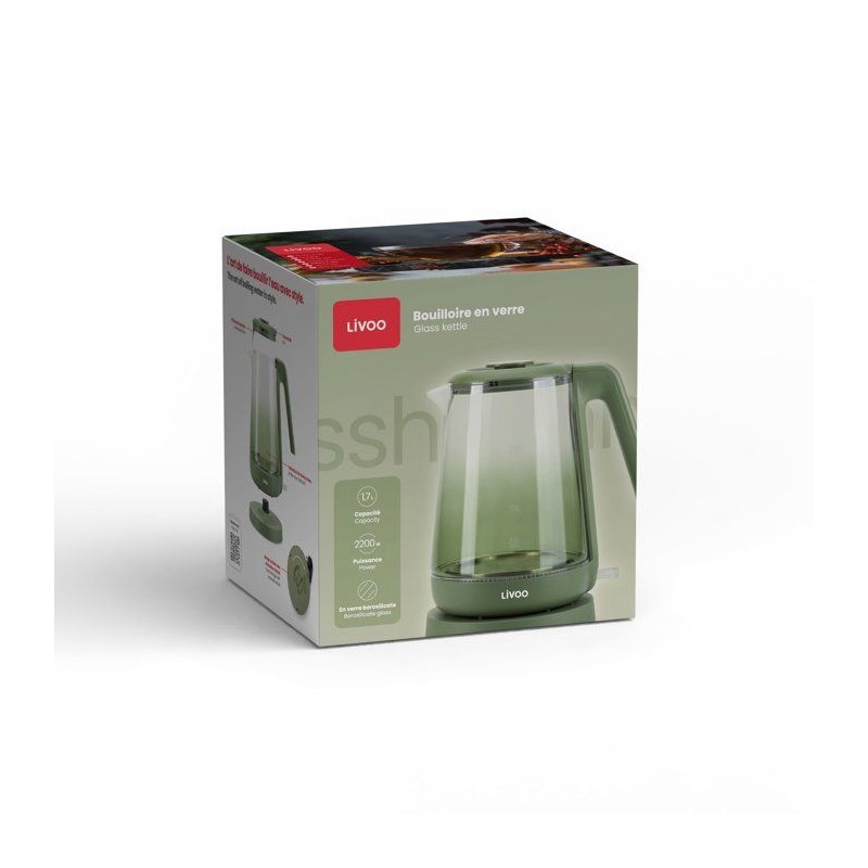 Bouilloire - LIVOO - DOD216V - 2200 W - 1,7 L - Verre / Vert