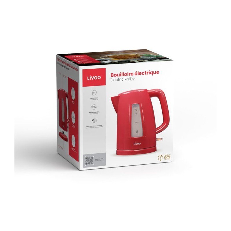 Bouilloire - LIVOO - DOD184RC - 2200 W - 1,7 L - Socle 360° - Rouge