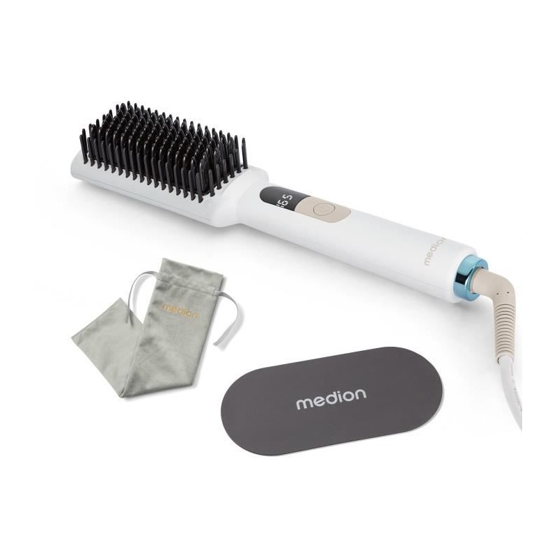 Brosse chauffante - MEDION - MD19859 - 46 W - 5 niveaux de chaleur - 165 a 210°C - Blanc