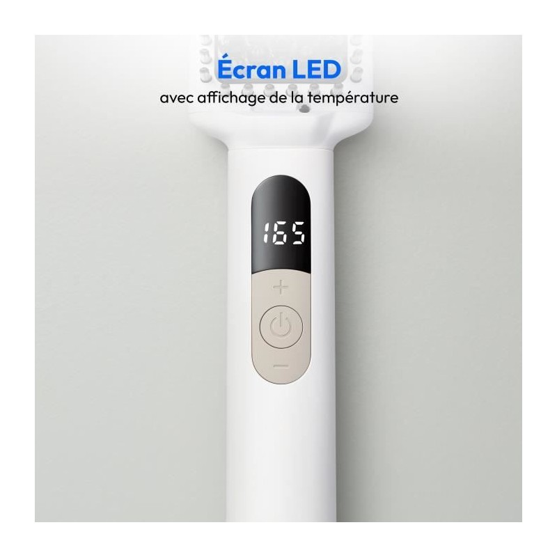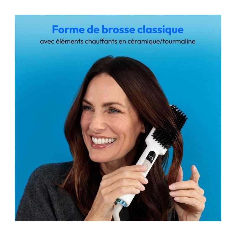 La brosse chauffante MEDION MD19859 offre un lissage professionnel a domicile grâce a sa technologie en céramique/tourmaline. Réglez la température de 165°C a 210°C pour un coiffage adapté a vos cheveux. Sa fonction ionique réduit les frisottis et préserve l'hydratation. Compacte et sécurisée avec arret automatique apres 60 minutes, elle est idéale pour des cheveux lisses et brillants.