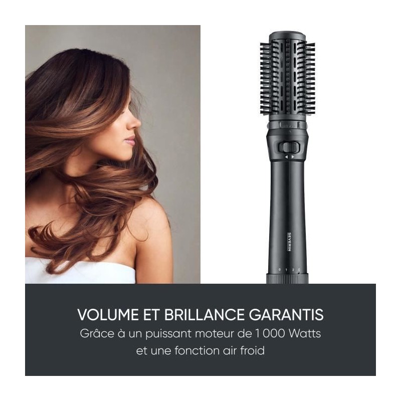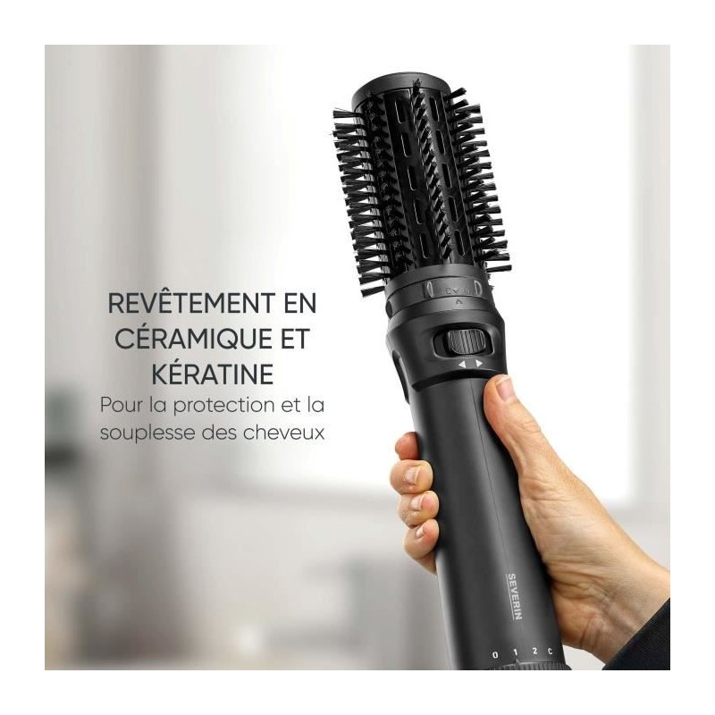 Brosse soufflante - SEVERIN - Styler multifonction avec revetement Céramique-Kératine - Auto-rotative - 3 embouts - 1000 W - N