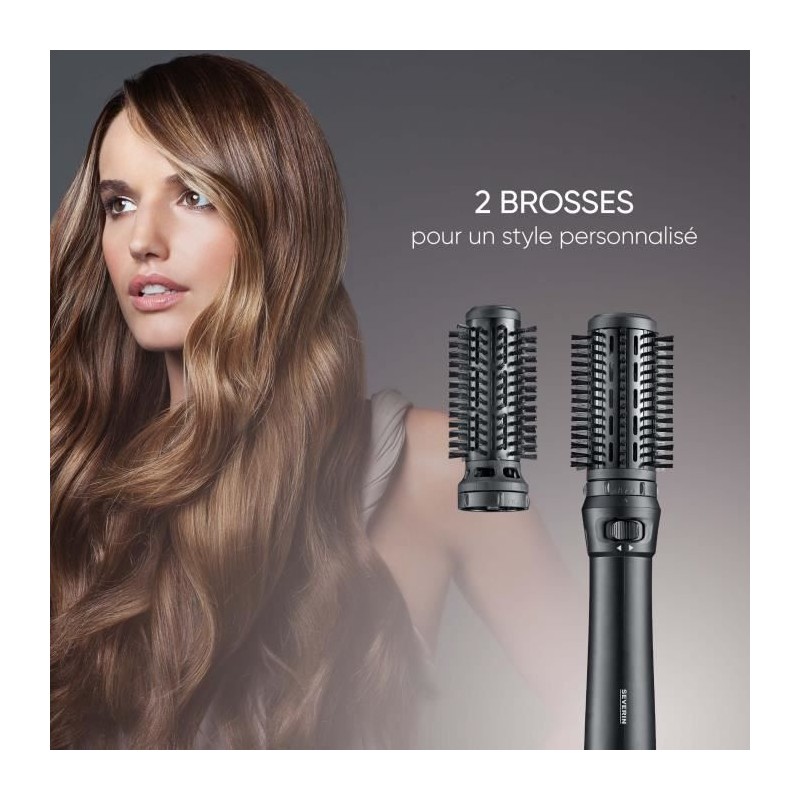 Brosse Soufflante Auto-Rotative SEVERIN : Volume & Soin Céramique-Kératine. Révolutionnez votre brushing avec la brosse a air chaud auto-rotative SEVERIN. Conçue pour sécher et coiffer simultanément, elle offre un volume spectaculaire et une finition professionnelle tout en protégeant la santé de votre fibre capillaire. Technologie Céramique-Kératine : Brillance & Protection. L'innovation majeure de ce styler réside dans son revetement céramique enrichi en kératine. Cette combinaison assure une répartition uniforme de la chaleur, réduit les frisottis et scelle l'écaille du cheveu pour une douceur éclatante et une protection thermique optimale. Coiffage Intelligent et Personnalisé : Grâce a sa rotation bidirectionnelle (gauche/droite), créez des ondulations souples ou des boucles structurées sans effort. Son moteur de 1 000 Watts dispose de deux réglages de température et d'une touche air froid pour fixer durablement votre mise en forme. 3 Embouts Interchangeables pour tous les styles : Brosse ronde 40 mm : Idéale pour les cheveux mi-longs, elle crée des boucles luxueuses. Brosse ronde 50 mm : Parfaite pour les cheveux longs, elle permet un volume XXL sur de grandes sections. Embout ovale 70 mm : L'accessoire ultime pour des styles dynamiques, des ondulations douces et un fini ultra-lisse. Ergonomie et Confort d'utilisation : L'articulation a 360° permet au cordon de suivre chacun de vos mouvements sans s'emmeler. Légere et maniable, cette brosse transforme le brushing en un moment de plaisir rapide et efficace.