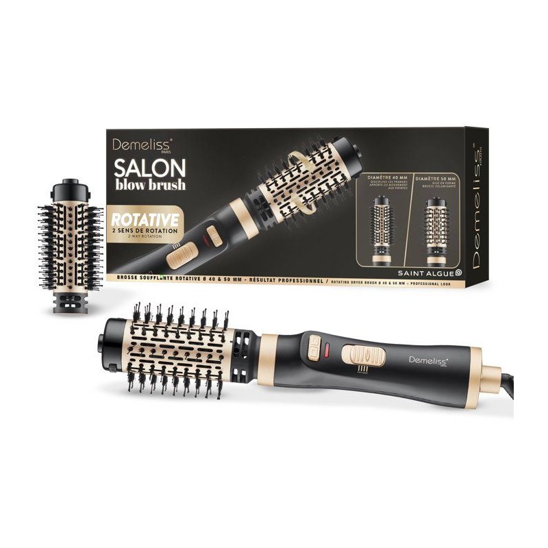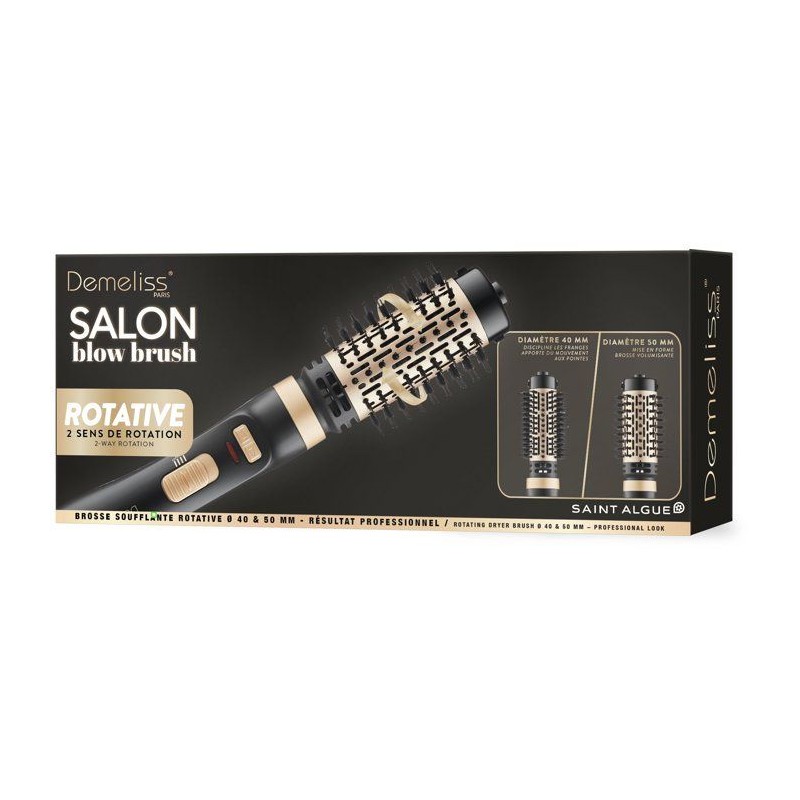 Brosse soufflante rotative - SAINT ALGUE - Demeliss Salon Blow Brush - 1000 W - 2 tetes - 3 températures - Noir / Or