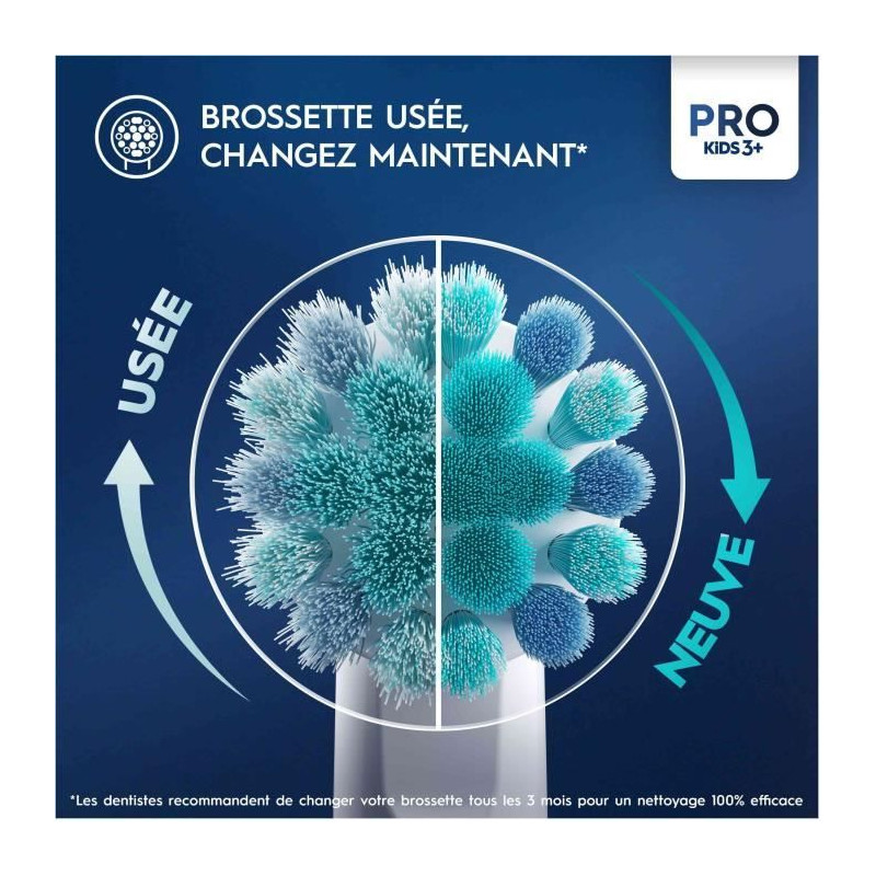 La brossette Oral-B Kids a l'effigie de Disney Le roi lion, adaptée aux enfants a partir de 3 ans, offre le nettoyage doux et efficace d'une brosse a dents Oral-B recommandée par les dentistes. Les filaments extra souples et la petite tete ronde sont spécialement conçus pour les enfants et sont compatibles avec toutes les brosses a dents électriques Oral-B Kids.