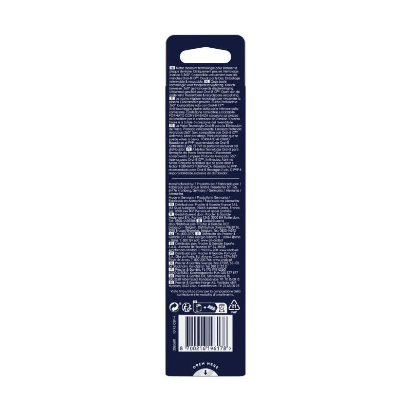 Les brossettes Oral-B iO Ultimate Clean offrent un brossage en profondeur avancé et l'élimination de la plaque dentaire. Pack de 4 brossettes noires, conçues pour les brosses a dents électriques Oral-B iO.