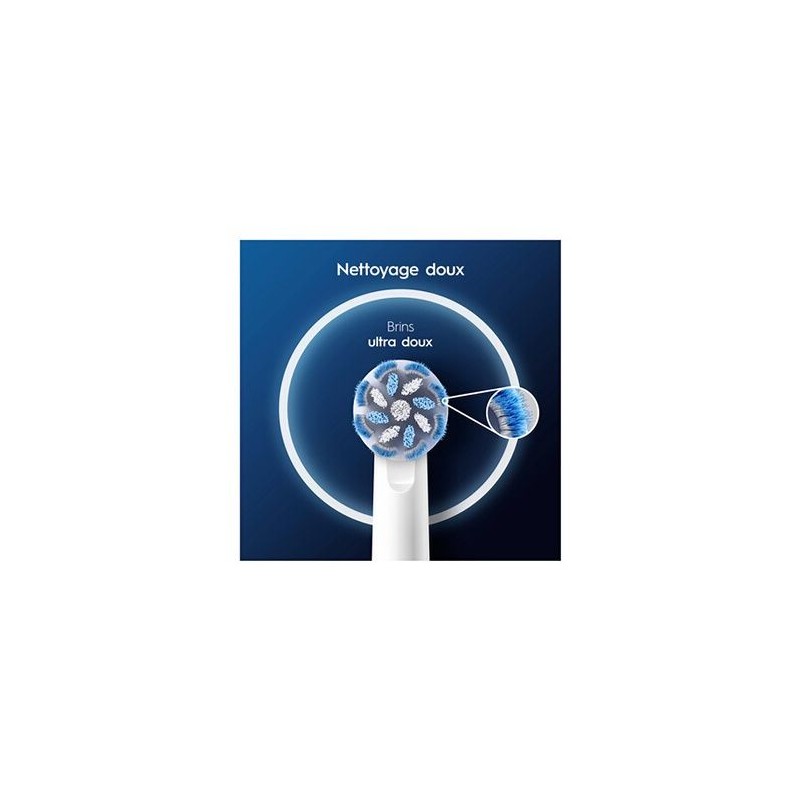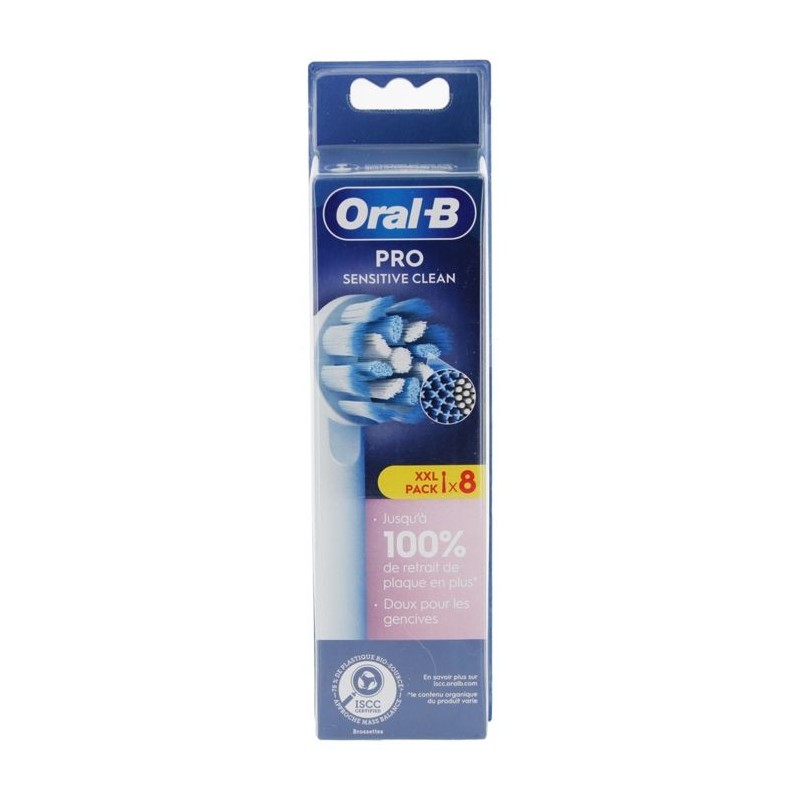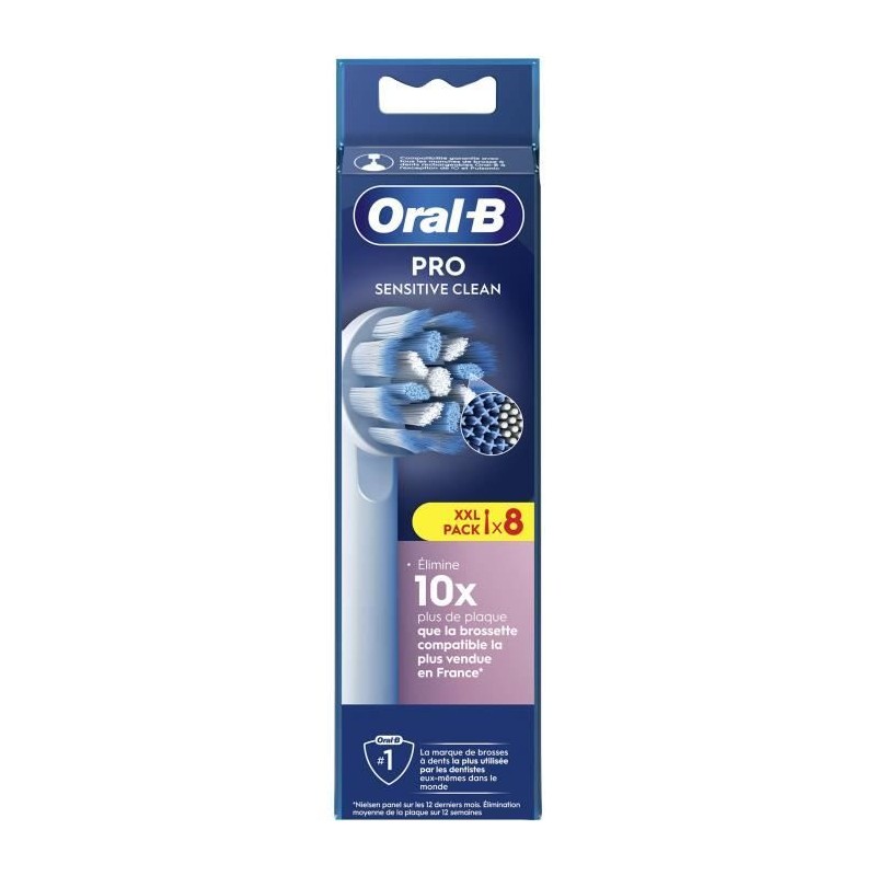 Découvrez les 8 brossettes Sensitive Clean d'ORAL-B, conçues pour un nettoyage doux et efficace. Compatibles avec tous les manches sauf Pulsonic et iO, elles possedent des brins en croix et ultra fins pour éliminer la plaque dentaire tout en préservant la santé des gencives.