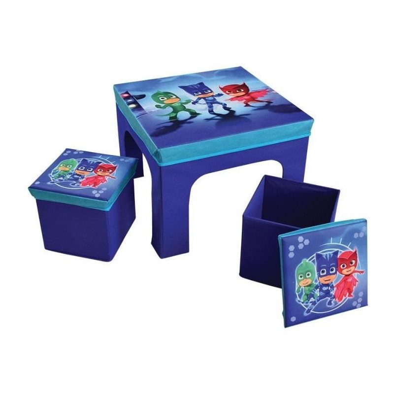 Fun House Pyjamasques ensemble table + 2 tabourets de rangements pliables pour enfant