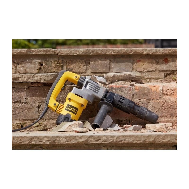 Le marteau demolisseur STANLEY FATMAX est un outil électrique professionnel puissant avec une force de frappe de 8 joules et une énergie d'impact de 8,5 joules. Il est équipé d'un emmanchement SDS Max et d'une fréquence de percussion de 2900 cps/min. Avec une puissance absorbée de 1010W, il est idéal pour travailler sur des matériaux tels que le béton.