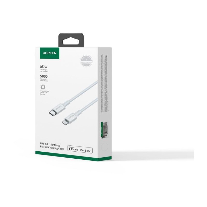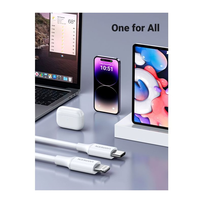 Câble Lightning - UGREEN - Silicone - USB-C - 1 m - Blanc