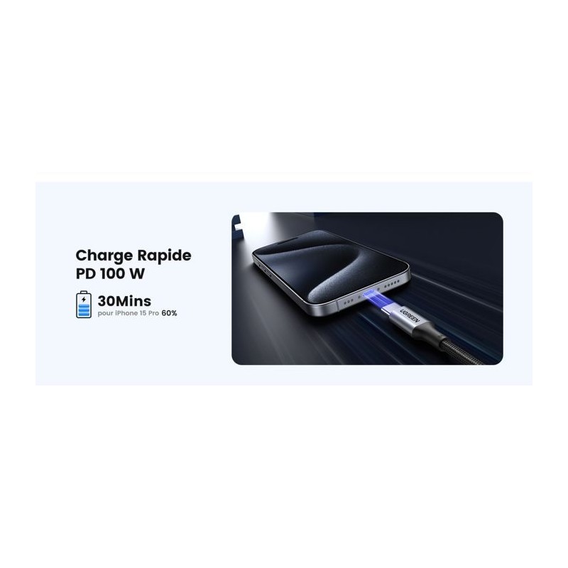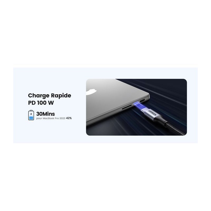 Câble USB-C - UGREEN - Câble renforcé type C vers C - 1 m - 100W - Noir