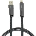 Un câble plat USB-C, 4 tetes de haute qualité. USB-A + USB-C et USB-C + Apple. Type C to Type C 20 W. Type C to Apple 20 W. USB-A to Type C 5V 3A. USB-A to Apple 5V 2.4A. Chargement & Data. Dimensions (Longueur, largeur, épaisseur) : 1 m x 11 mm x 2 mm.