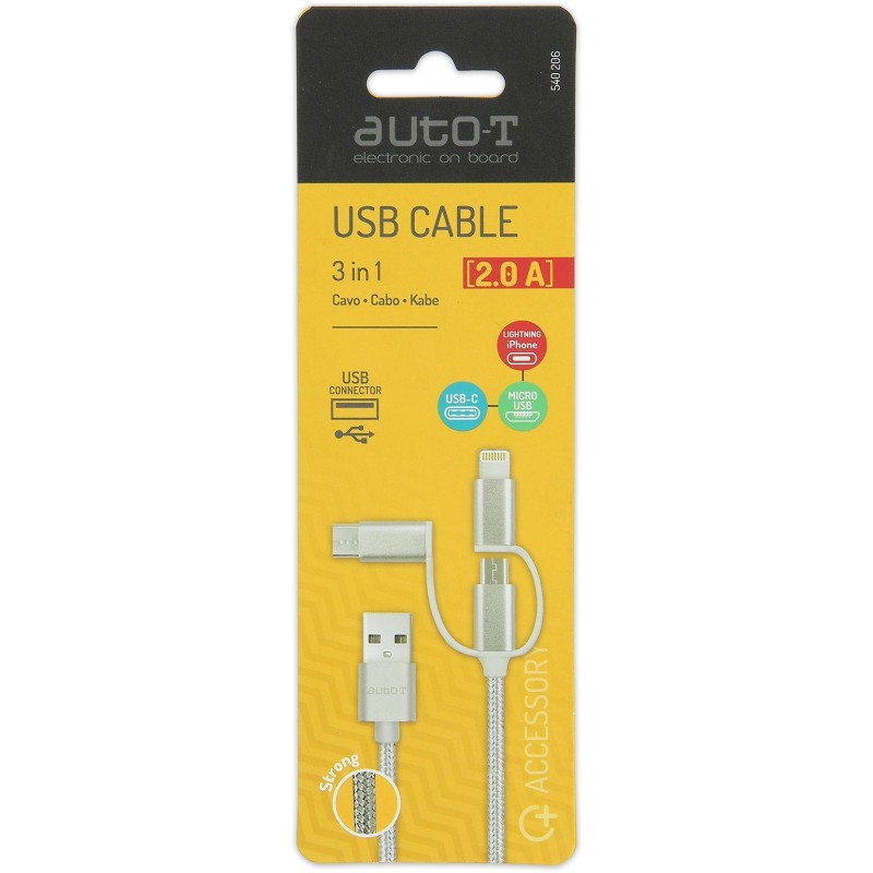 Câble 3 en 1 - AUTO T - 540206 - Micro-USB - Apple - USB-C