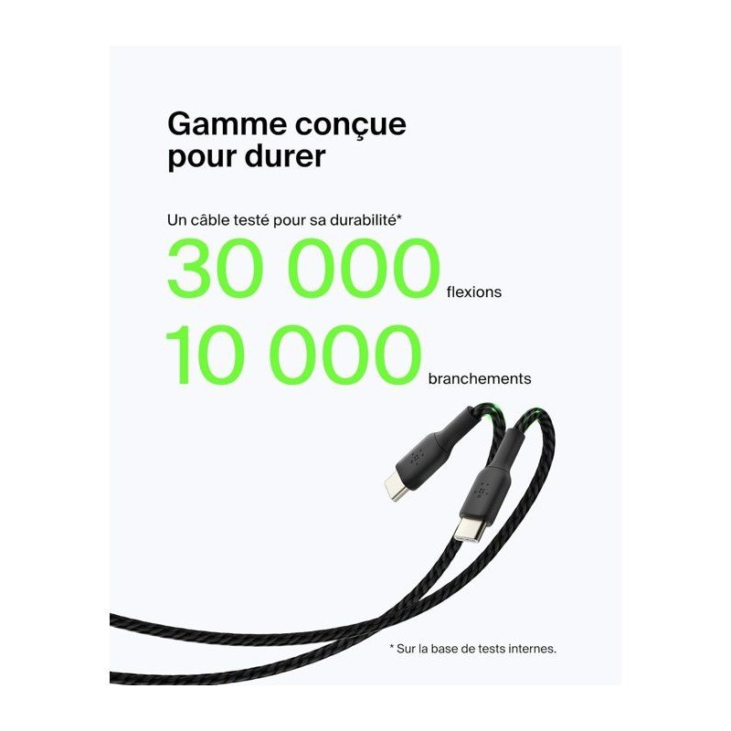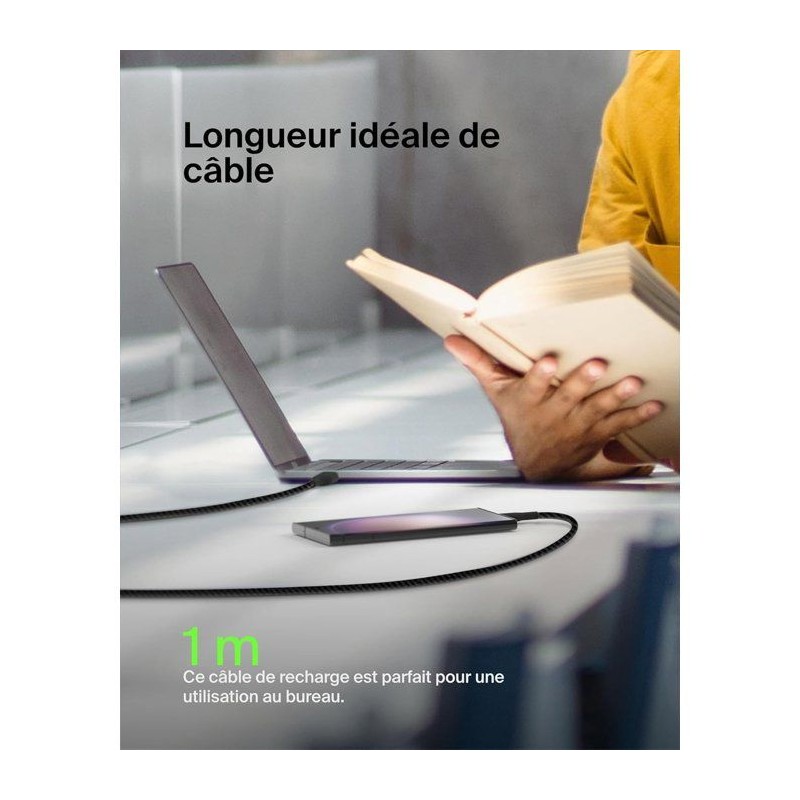 Câble tressé - BELKIN - USB-C vers USB-A - 1 m - Noir
