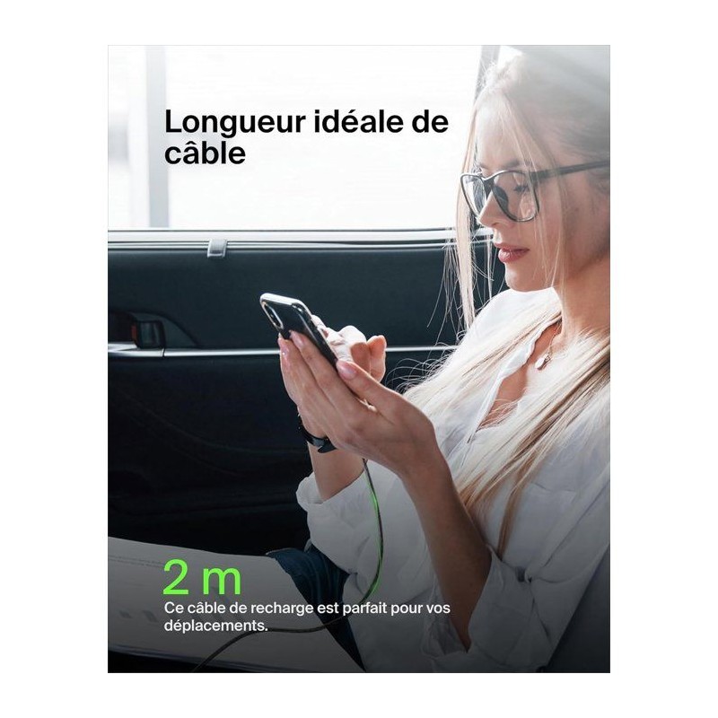 Câble tressé - BELKIN - USB-C vers USB-A - 2 m - Noir