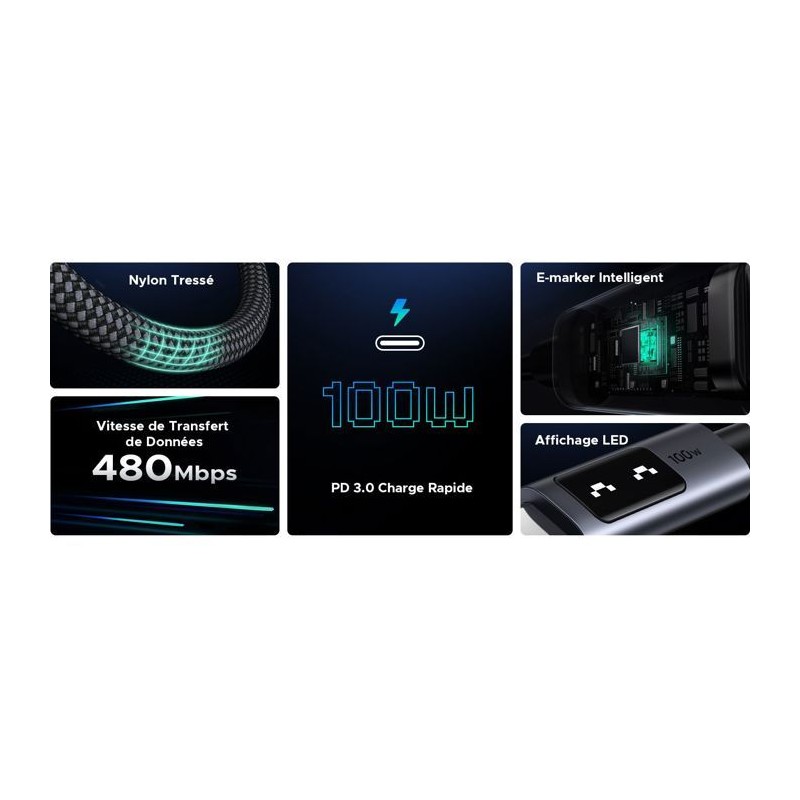Le câble USB-C vers USB-C UGREEN 1 metre combine puissance, durabilité et élégance. Avec une capacité de charge jusqu'a 100W, il permet la recharge rapide et le transfert de données sécurisé pour ordinateurs portables, tablettes et smartphones compatibles PD. Son revetement en nylon tressé renforce la résistance aux torsions et a l'usure quotidienne, garantissant une longue durée de vie. Compact, flexible et fiable, ce câble noir est parfait pour une utilisation au bureau, a domicile ou en déplacement, offrant une solution de recharge performante et durable.