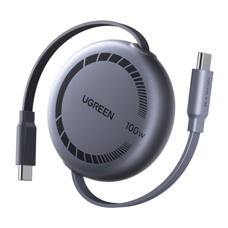 Câble USB-C - UGREEN - Câble rétractable USB-C vers USB-C PD - 100W - 1 m - Noir