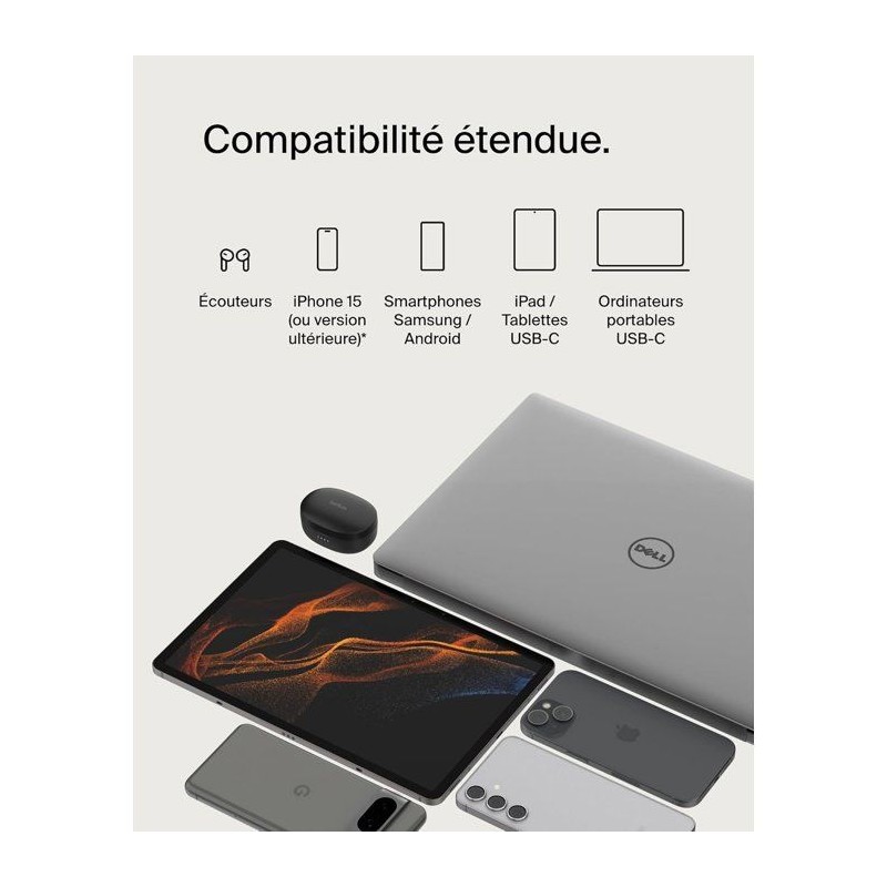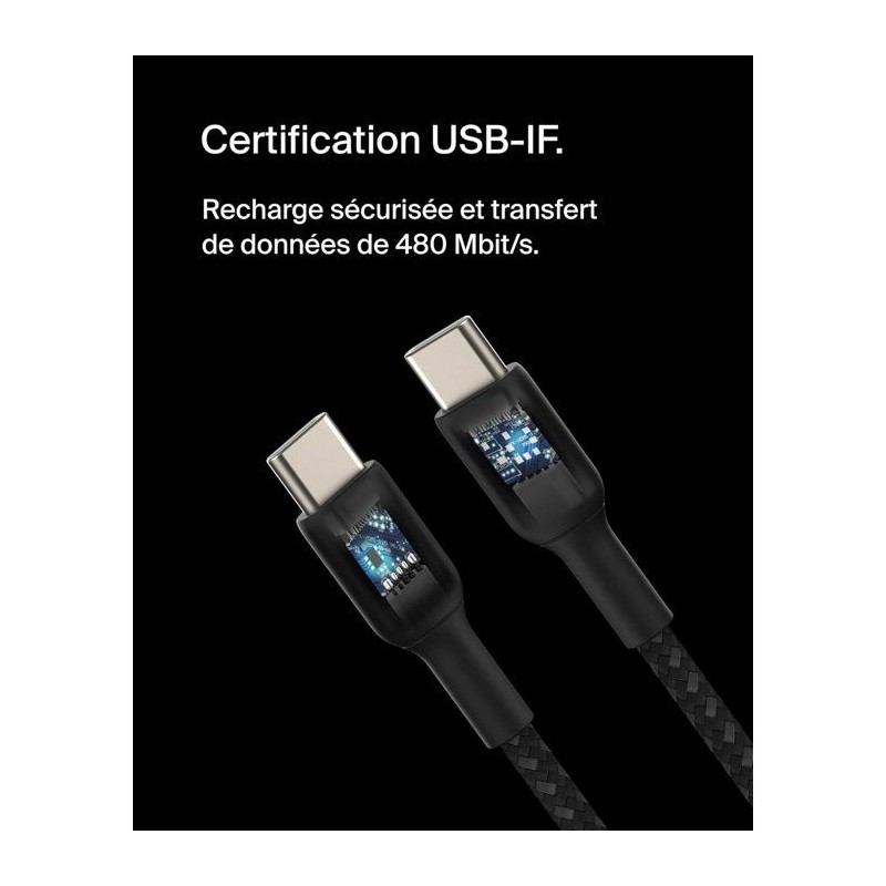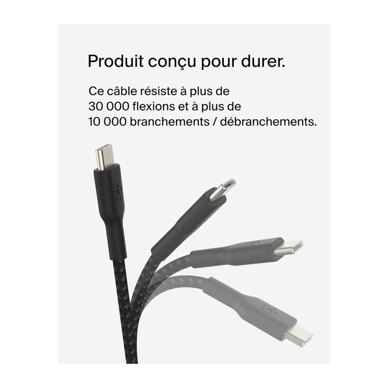Câble tressé - BELKIN - USB-C vers USB-C - 2 m - Blanc