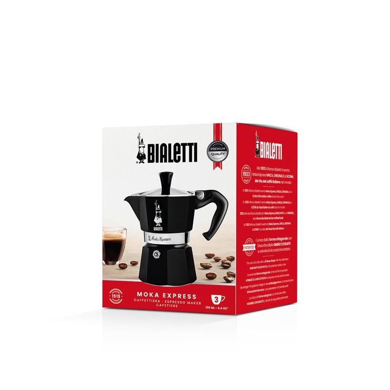 Cafetiere italienne - BIALETTI - Moka Express - Tous feux sauf induction - 3 tasses - 100 ml - Noir