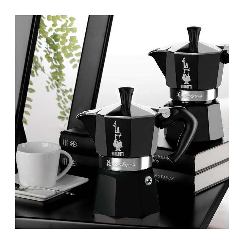 Un café intense en solo avec La Mokina noire. Son format compact et son design épuré en font l'alliée des amateurs d'espresso.