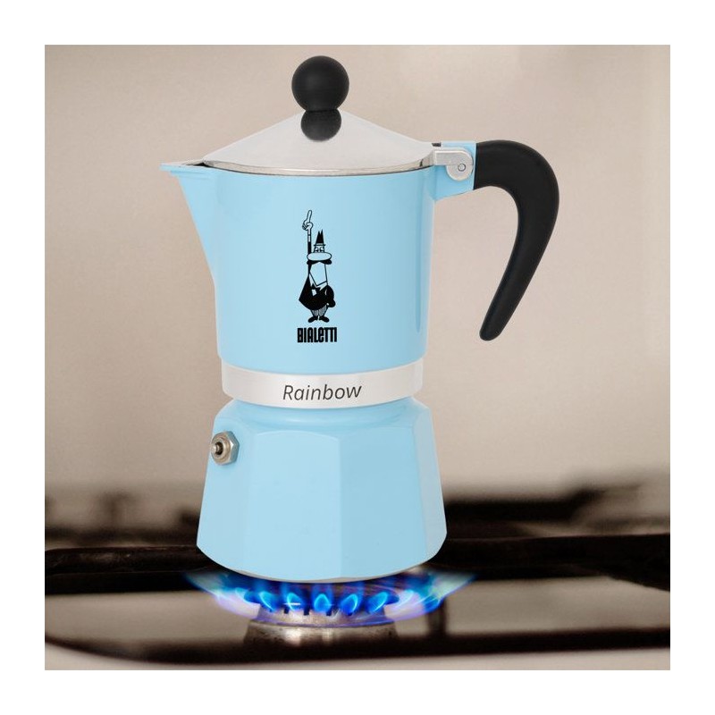 Cafetiere italienne - BIALETTI - Moka Express - Tous feux sauf induction - 6 tasses - 300 ml - Rainbow Bleu