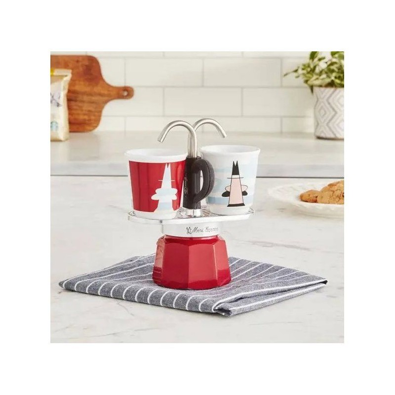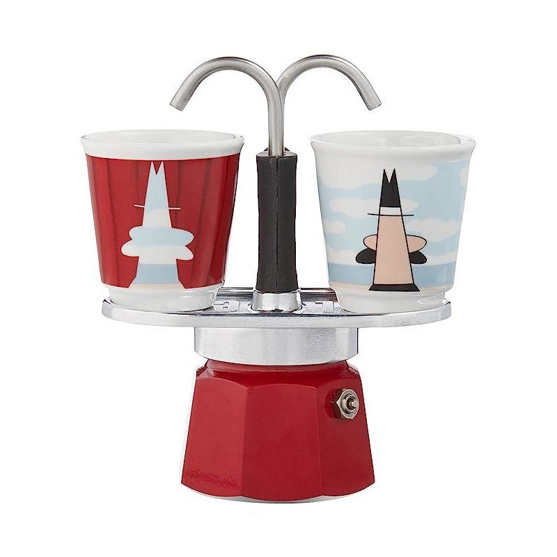 Set cafetiere italienne + 2 tasses - BIALETTI - Mini-express MAGRITTE - Inox / Rouge