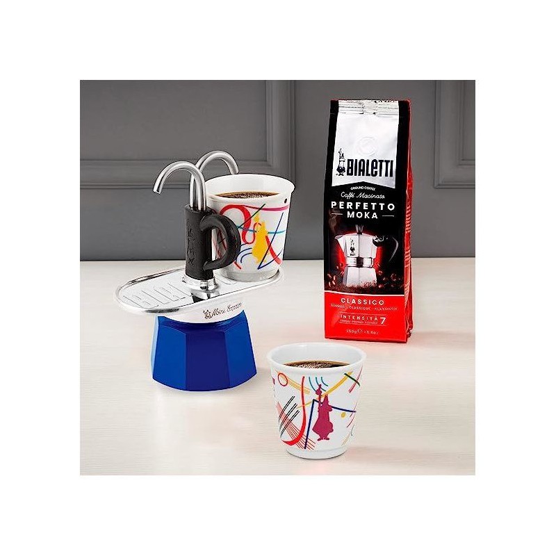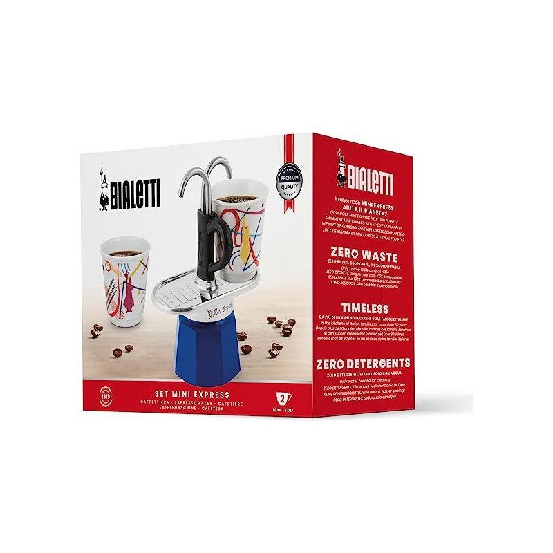 Set cafetiere italienne + 2 tasses - BIALETTI - Mini-express KANDINSKY - 100 ml - Inox / Bleu