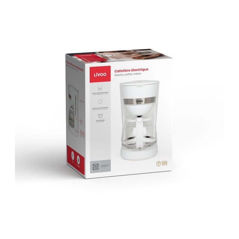 Cafetiere électrique - LIVOO - DOD200W - 750 W - 1,25 L - 10 a 12 tasses - Blanc