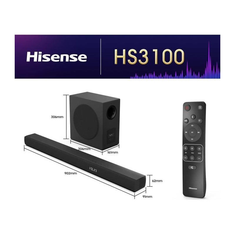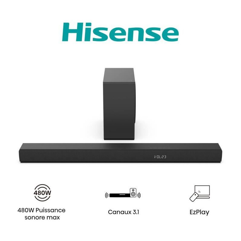 Barre de son - HISENSE - Caisson de basses sans fil - Bluetooth - 3.1 CH - Max 480 W
