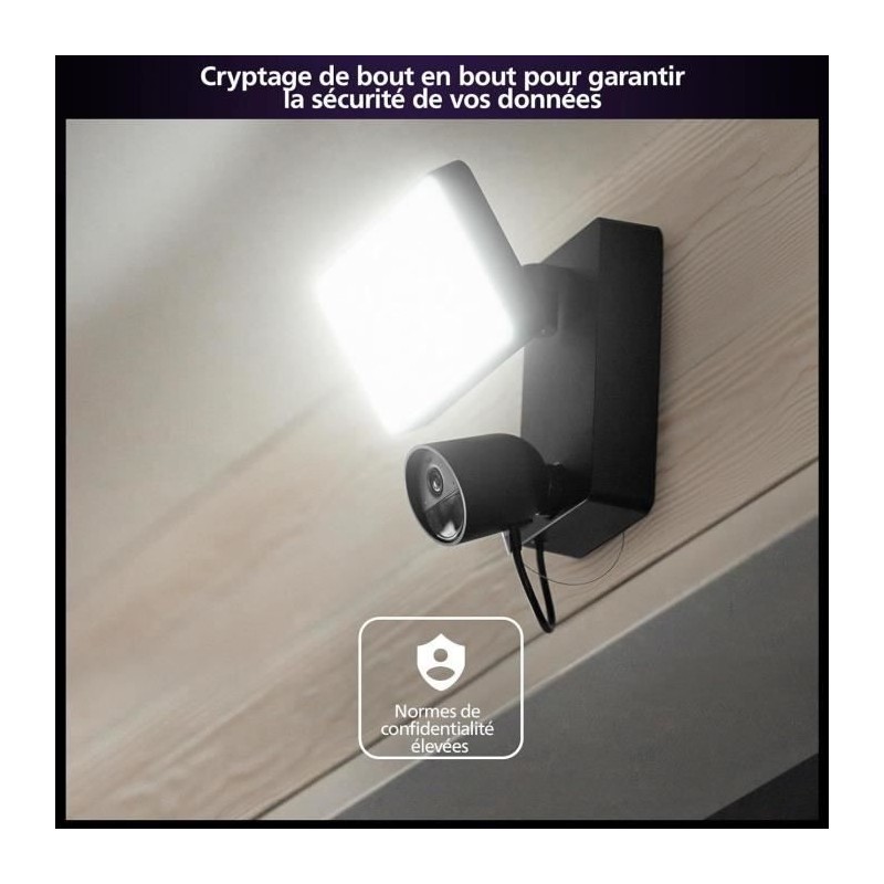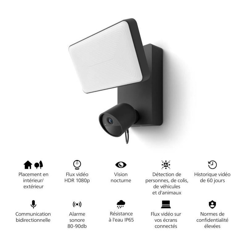 Laissez Philips Hue Garder un oeil sur Votre Maison pour Vous avec la Caméra a Projecteur Sécurisé , Obtenez une Image Hd 1080P Nette et Claire et une Puissante Puissance de 2 250 Lumens avec Cette Combinaison d'Éclairage et de Caméra. avec une Vision Nocturne automatique, la Caméra Philips Hue Secure Intégrée Offre a la Fois des Capacités de Diffusion en Direct et d'enregistrement Afin Que Vous Soyez Toujours au Courant de Ce Qui Se Passe dans et autour de Votre Maison. les Vidéos Commencent a etre enregistrées Des Qu'un Mouvement Est Détecté et Peuvent etre Consultées depuis Le Centre de Sécurité de l'Application Hue Pendant 60 Jours Maximum. Comme Toujours, Votre Vie Privée Est Priorité. Tous les enregistrements Vidéo et audio Ainsi Que les Flux en Direct de Votre Caméra Filaire Hue Secure Sont Cryptés de Bout en Bout et Ne Peuvent etre Vus Que par Vous et les Utilisateurs autorisés. Lorsque Vous N'etes Pas Chez Vous, Votre Appareil Photo Peut etre a la Fois Vos Yeux et Vos Oreilles. Lorsqu'Il Détecte un Mouvement, Le Projecteur S'Allume et envoie une Alerte a Votre Appareil Mobile Afin Que Vous Puissiez Examiner Ce Qui Se Passe et Prendre des Mesures. l'Ia Garantit Que Vous Savez Exactement Ce Qui A Déclenché Le Mouvement Détecté par Votre Caméra : une Personne, un Animal, un Véhicule ou Meme un Colis. Déclenchez des Alarmes Lumineuses et Sonores, Dites « Bonjour , » a un Visage Amical Grâce au Chat Bidirectionnel Intégré, entrez en Contact avec un Contact de Confiance ou Alertez les autorités (Le Tout d'un Simple Toucher dans l'Application Hue ,) . Vous aurez Toujours Le Contrôle de Votre Systeme de Sécurité et Serez Informé de Ce Qui Se Passe, depuis N'Importe Quel endroit Disposant d'une Connexion Internet. Ce N'Est Pas Seulement une Caméra de Sécurité Domestique, Elle Fait partie du Systeme Philips Hue. Il Fonctionne avec Vos autres Lumieres, Capteurs et Accessoires Philips Hue pour Améliorer la Protection Complete.