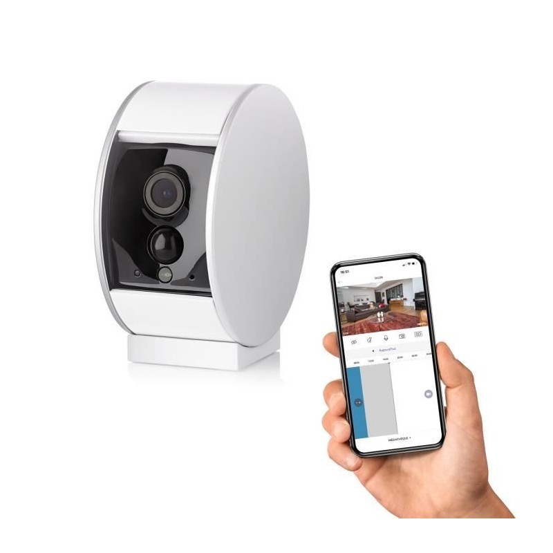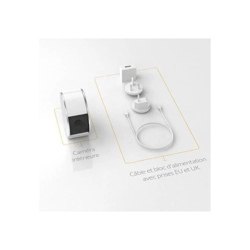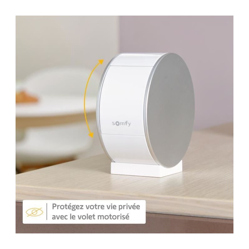 Somfy Indoor Camera, caméra de surveillance connectée Inclus dans chaque boîte: caméra Full-HD 1080P, câble USB (3m), adaptateur USB, notice d'utilisation et picot Reset. Caméra de surveillance Full-HD 1080P avec vision nocturne, grand angle 130° et zoom x8, Vous gardez un &oelig il permanent sur votre domicile depuis votre smartphone, où que vous soyez. Détection de mouvement intelligente grâce a la combinaison de l'infrarouge et de l'analyse d'images. Lors d'une détection, vous recevez immédiatement une vidéo de 30s de l'événement téléchargeable gratuitement pendant 7 jours. Cache motorisé automatique qui couvre l'objectif quand vous etes chez vous, pour une intimité protégée. Installation simple avec l'application Somfy Protect Fonctionne de maniere autonome ou en complément d'un systeme de sécurité Somfy Protect : Somfy Home Alarm, Somfy One(+) ou Myfox Home Alarm. Non compatible avec Myfox Home Control, Evology et Domotag. Compatible avec Apple Homekit, Amazon Alexa, l'Assistant Google, IFTTT et TaHoma pour vous ouvrir a un nouvel univers pour contrôler votre maison. Avec Somfy Indoor Camera, contrôlez ce qui se passe chez vous directement depuis votre smartphone où que vous soyez, de jour comme de nuit grâce a sa vision nocturne. En cas de détection de mouvement, vous recevez une alerte sur votre smartphone et pouvez accéder gratuitement aux enregistrements vidéos de l'évenement. Enregistrements vidéos gratuits A chaque détection de mouvement, la caméra enregistre automatiquement un clip vidéo de l'évenement. Vous pouvez consulter l'enregistrement directement depuis votre application et le télécharger gratuitement sur votre smartphone. Détection sélective En plus d'une technologie de détection alliant détection infrarouge et analyse d'images, vous pouvez sélectionner les zones que vous ne souhaitez pas surveiller, comme le canapé où votre chien a toujours l'habitude de s'installer. Sécurisez uniquement ce qui est important : les fenetres, les portes.