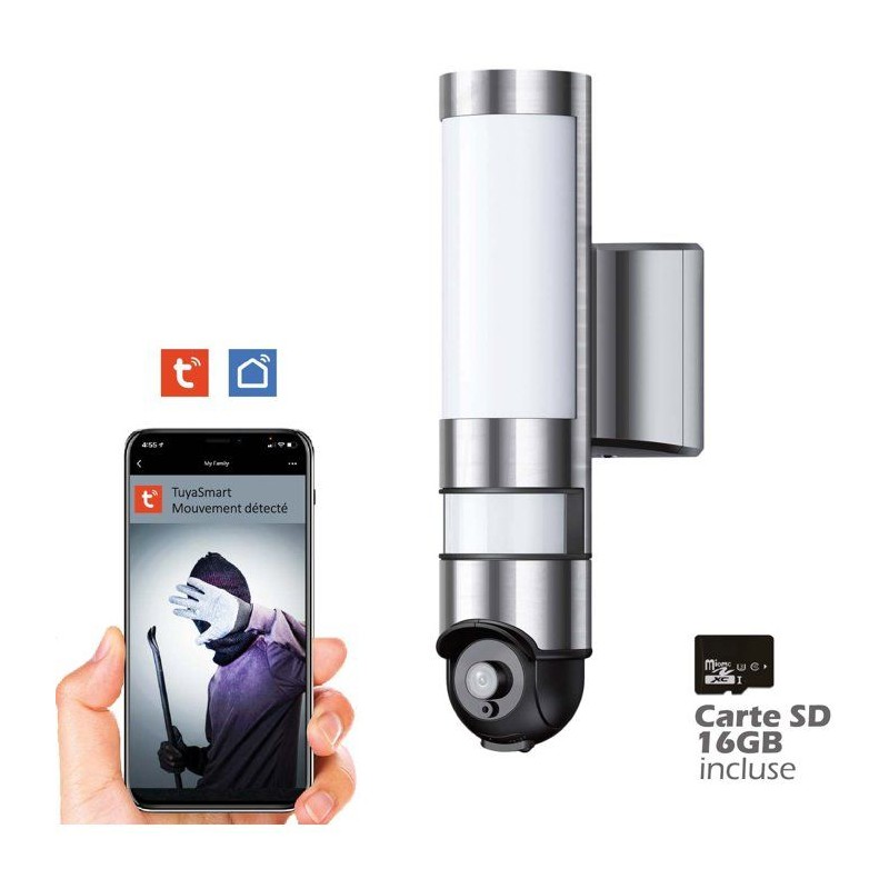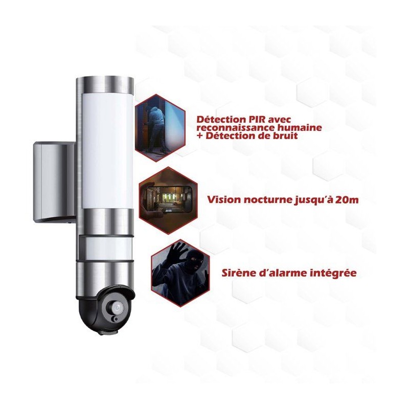 Caméra extérieure - KYF - Connectée Wifi - Rotative - Filaire - 220V - Eclairage LED 1600 Lm