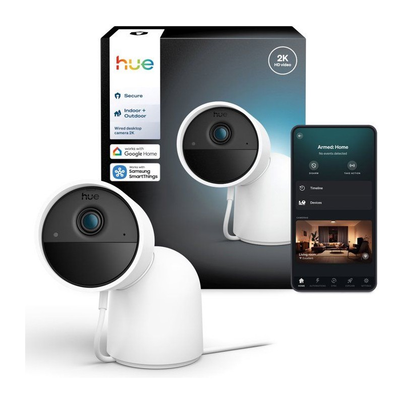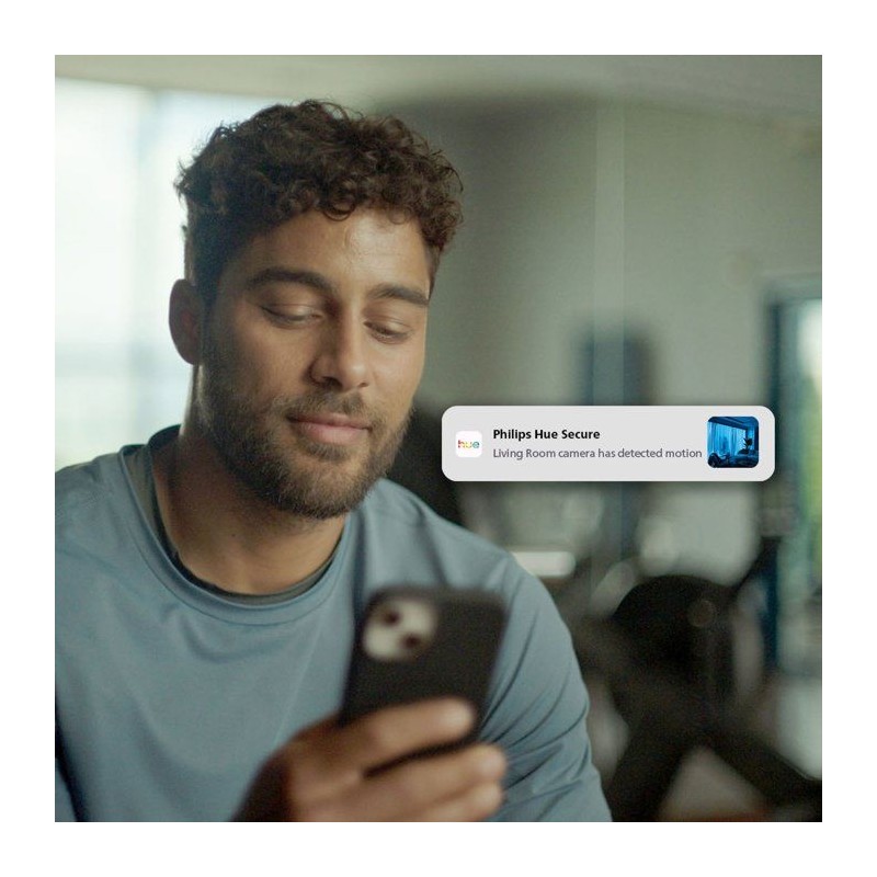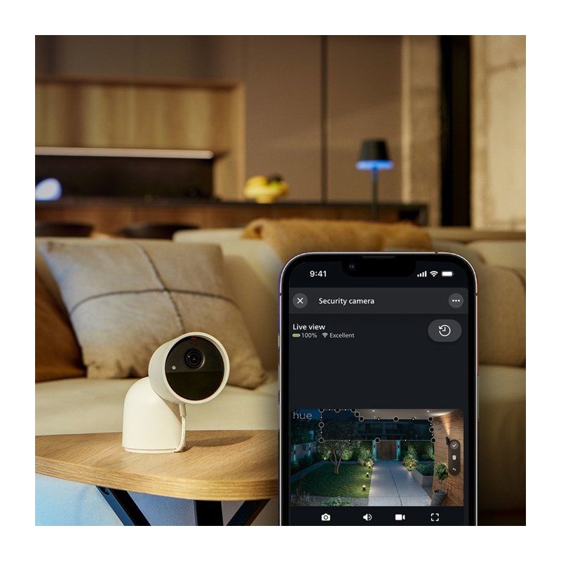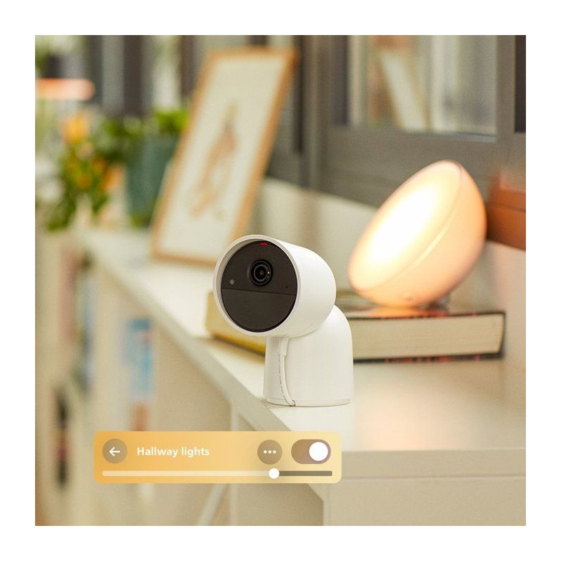 SÉCURITÉ INTÉGRÉE AUX LUMIeRES PHILIPS HUE - Les caméras Hue Secure fonctionnent parfaitement avec vos ampoules Hue, les allumant automatiquement lorsqu'un mouvement est détecté afin d'améliorer la visibilité et de dissuader les intrus. RESTEZ CONNECTÉ PARTOUT - Recevez des notifications de mouvement sur votre phone, visualisez des vidéos ou des images en direct et déclenchez des alarmes directement depuis l'application Hue, pour rester informé meme lorsque vous etes absent. CONTRÔLE TOUT-EN-UN - Gérez vos lumieres, caméras, capteurs et notifications de sécurité Hue depuis l'application Hue, pour un system de sécurité domestique complet et centralisé. VIDÉO D'UNE NETTETÉ EXCEPTIONNELLE, DE JOUR COMME DE NUIT - Enregistrez en 2K ou HD 1080p d'une netteté remarquable grâce a la vision nocturne infrarouge, pour des images claires meme en conditions de faible luminosité, a l'intérieur comme a l'extérieur. SURVEILLANCE PERSONNALISÉE - Accédez a des vidéos en direct ou enregistrées a tout moment, définissez des zones de confidentialité et activez des lumieres ou des alarmes d'un simple clic, tout en restant informé des alertes de mouvement où que vous soyez.