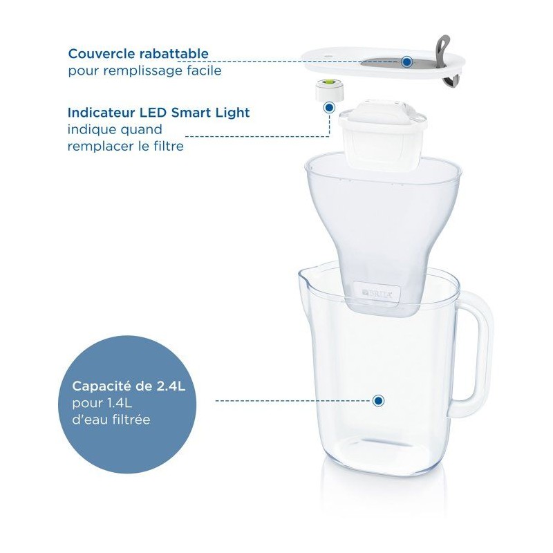 Carafe filtrante BRITA - Style Bleu - Capacité 2,4L dont 1,4L d'eau filtrée - 3 mois MAXTRA PRO