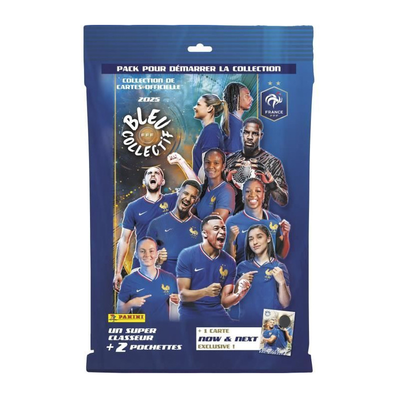 Ce pack de démarrage est composé de : - un classeur - 4 pochettes de 6 cartes, soit 24 cartes au total* - 2 cartes Édition Limitée, réparties aléatoirement Pour la toute premiere fois, Panini réunit les équipes de France masculine et féminine dans une seule et meme collection de cartes officielles, aux couleurs de la FFF !