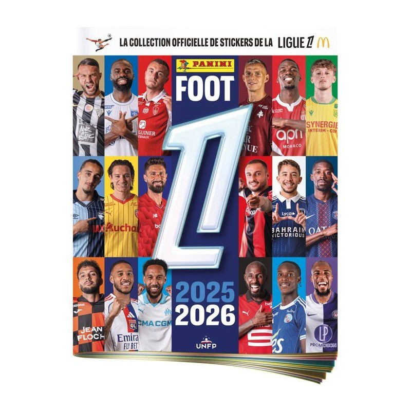 Ce pack de démarrage comprend : - 5 pochettes de 7 stickers, soit 35 stickers au total. - 1 album de 96 pages contenant des contenus exclusifs Découvrez la nouvelle collection PANINI FOOT 2025-2026 Ligue 1 McDonald's ! Pour célébrer la 51e édition du mythique album de stickers dédié au Championnat de France de football, plongez au coeur d'un album emblématique de 96 pages ! Cette édition 2025/2026 s'annonce exceptionnelle avec 556 stickers a collectionner dont 405 classiques, 134 brillants et 18 stickers spéciaux maillot avec effet tissu pour un rendu unique. Chaque club de Ligue 1 dispose de 28 stickers : 22 portraits + 6 spéciaux (logo, maillot, recrue, maestro, serial buteur, photo d'équipe) a découvrir également dans cette collection des nouveautés exclusives pour chaque club : -Historique des 10 dernieres saisons, -Bilans de matchs et retour sur la meilleure saison de l'histoire du club, -4 pages dédiées au mercato hivernal, -Une double page Arbitrage & VAR (9 stickers), -Et bien sûr, le calendrier complet de la saison. Sans oublier la grande nouveauté 2026 : les Rivalités & Derbys ! -Retrouvez 7 doubles pages consacrées aux confrontations mythiques du championnat avec photos et stickers exclusifs. La couverture inédite, mettant en avant les 18 joueurs stars de la saison, en fait déja une édition incontournable et collector ! *Stickers répartis aléatoirement dans les pochettes.