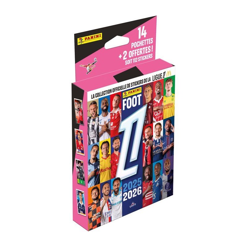 Ce Blister se compose de : - 14 pochettes + 2 offertes de 7 stickers soit un total de 112 stickers. Découvrez la nouvelle collection PANINI FOOT 2025-2026 Ligue 1 McDonald's ! Pour célébrer la 51e édition du mythique album de stickers dédié au Championnat de France de football, plongez au coeur d'un album emblématique de 96 pages ! Cette édition 2025/2026 s'annonce exceptionnelle avec 556 stickers a collectionner dont 405 classiques, 134 brillants et 18 stickers spéciaux maillot avec effet tissu pour un rendu unique. Chaque club de Ligue 1 dispose de 28 stickers : 22 portraits + 6 spéciaux (logo, maillot, recrue, maestro, serial buteur, photo d'équipe) a découvrir également dans cette collection des nouveautés exclusives pour chaque club : -Historique des 10 dernieres saisons, -Bilans de matchs et retour sur la meilleure saison de l'histoire du club, -4 pages dédiées au mercato hivernal, -Une double page Arbitrage & VAR (9 stickers), -Et bien sûr, le calendrier complet de la saison. Sans oublier la grande nouveauté 2026 : les Rivalités & Derbys ! -Retrouvez 7 doubles pages consacrées aux confrontations mythiques du championnat avec photos et stickers exclusifs. La couverture inédite, mettant en avant les 18 joueurs stars de la saison, en fait déja une édition incontournable et collector ! *Stickers répartis aléatoirement dans les pochettes.