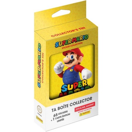Cette offre est composée de : - 1 boite métal - 13 pochettes de 5 stickers (soit 65 stickers au total)* - 1 carte Édition Limitée n°1 MARIO Plonge dans l'univers incroyable de Super Mario avec cette collection de stickers pleine d'action et de surprises ! Pars a l'aventure avec Mario, Luigi, Peach et Toad, a travers 240 stickers a collectionner, dont 80 stickers spéciaux. Et le petit plus de cette collection ? 16 stickers optichrome, des stickers paralleles exclusifs avec un nouveau matériau et un effet inédit, a retrouver uniquement dans les Mégabox disponibles sur panini.fr ! Retrouve aussi des fiches personnages pleines d'anecdotes et un insert détachable avec un grand poster double face sur l'histoire de Mario au fil des années ! 8 cartes Édition Limitée sont a retrouver dans les produits suivants : -Les cartes n° 1, 2, 3, 4, 5 sont a retrouver dans les 5 boîtes en métal collector composées de 13 pochettes + 1 carte Édition Limitée. A chaque boîte, sa carte Édition Limitée spécifique. - La carte n°6 dans le blister de 8 pochettes + 1 carte Édition Limitée - La carte n°7 dans le pack de démarrage composé de 1 album + 3 pochettes + 1 carte Édition Limitée - En exclu panini.fr, la carte Édition Limitée n°8 offerte pour l'achat d'une boîte de 36 pochettes *Stickers répartis aléatoirement dans les pochettes.