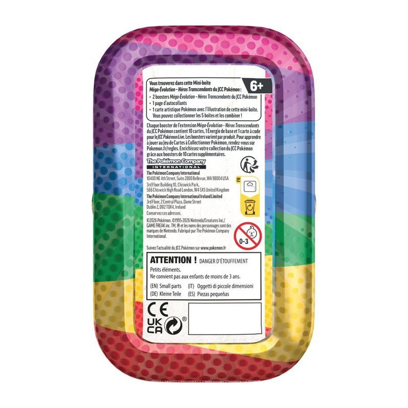 Elle tient au creux de la main, remplie de promesses : la Mini-boîte est remplie de cartes ! Elle est parfaite pour cette extension spéciale plein de duels, pour tous les Dresseurs et les collectionneurs. Cinq visuels sont disponibles !