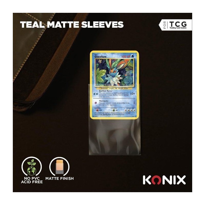 Protege-cartes - Konix - Matte Sleeves 66 x 91 mm compétition - 100 pochettes - Magic The Gathering, Pokémon - Bleu turquoise