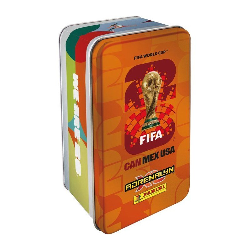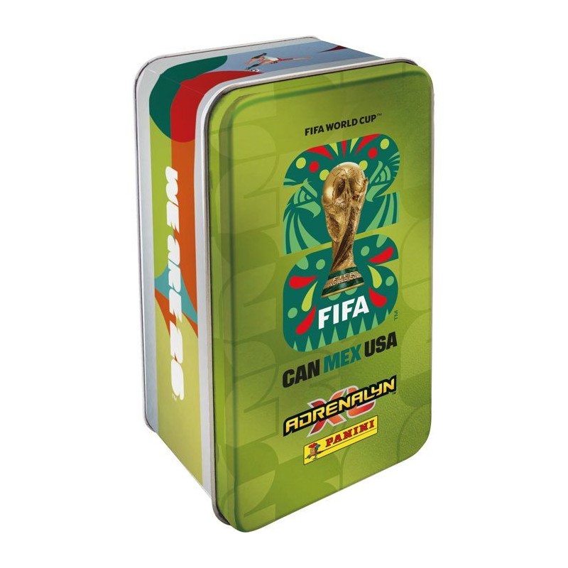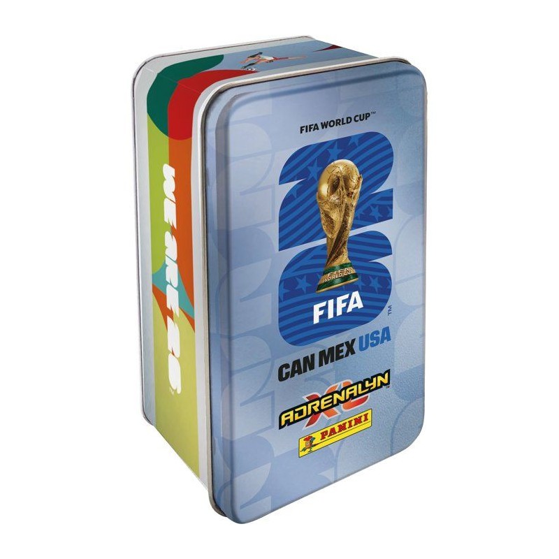 Cette boite métal contient : - 8 pochettes de 8 cartes, soit un total de 64 cartes - 1 carte Golden Baller (1 en aléatoire parmi les Golden Baller Mohamed Salah, Erling Haaland, Vinicius Junior, Cristiano Ronaldo) - 3 cartes Édition Limitée dont 2 du Mix 1 et 1 du Mix 4 | Fichier PDF de la liste des Éditions Limitées a venir - 1 carte pour le jeu en ligne (150 coins) La couleur de la boite métal est aléatoire. La COUPE DU MONDE DE LA FIFA 2026(TM) promet la célébration du football la plus vibrante jamais organisée, réunissant des fans des quatre coins du monde. Désormais, avec la toute nouvelle collection Adrenalyn XL(TM), plonge au coeur de l'excitation du tournoi. Composée de 630 cartes aux graphismes spectaculaires, aux matériaux spéciaux et mettant en avant les plus grands joueurs du monde, cette collection te permet de constituer ton équipe de reve, d'explorer plusieurs modes de jeu et de défier des fans du monde entier. Des HERoeS et FAN FAVOURITES jusqu'a l'arrivée des GOLDEN BALLERS et des cartes ETERNOS 22, ultra rares, chaque pochette est remplie de surprises. Débute des aujourd'hui ton aventure COUPE DU MONDE DE LA FIFA 2026(TM) Adrenalyn XL(TM) — par amour du jeu. *Cartes réparties aléatoirement dans les pochettes