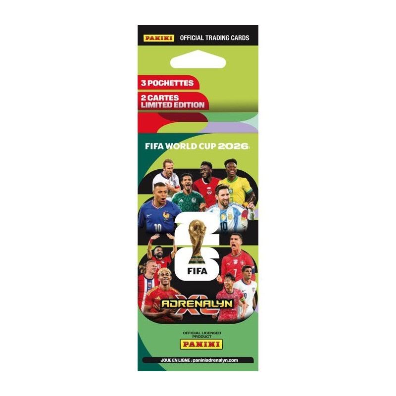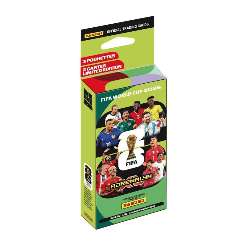 Ce blister se compose de : - 3 pochettes de 8 cartes, soit 24 cartes. - 2 cartes en édition limitée du Mix 2 | Fichier PDF de la liste des Éditions Limitées a venir La COUPE DU MONDE DE LA FIFA 2026(TM) promet la célébration du football la plus vibrante jamais organisée, réunissant des fans des quatre coins du monde. Désormais, avec la toute nouvelle collection Adrenalyn XL(TM), plonge au coeur de l'excitation du tournoi. Composée de 630 cartes aux graphismes spectaculaires, aux matériaux spéciaux et mettant en avant les plus grands joueurs du monde, cette collection te permet de constituer ton équipe de reve, d'explorer plusieurs modes de jeu et de défier des fans du monde entier. Des HERoeS et FAN FAVOURITES jusqu'a l'arrivée des GOLDEN BALLERS et des cartes ETERNOS 22, ultra rares, chaque pochette est remplie de surprises. Débute des aujourd'hui ton aventure COUPE DU MONDE DE LA FIFA 2026(TM) Adrenalyn XL(TM) — par amour du jeu. *Cartes réparties aléatoirement dans les pochettes