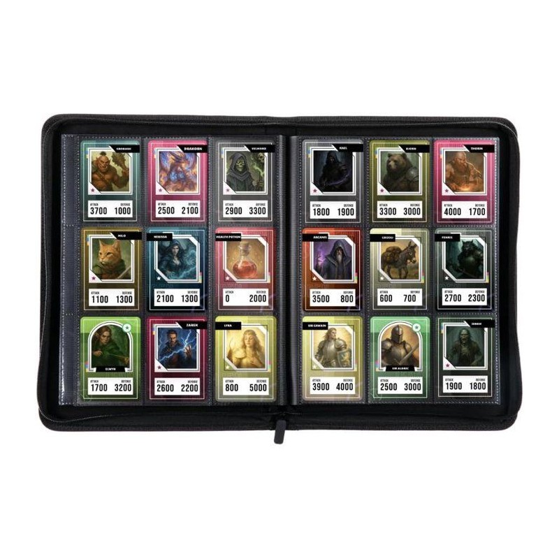 Conçu pour les passionnés de cartes a collectionner, cet album offre une grande capacité de rangement pouvant accueillir jusqu'a 360 cartes grâce a ses pages recto verso avec 9 compartiments par côté. Compatible avec le format standard 63x88 mm, il convient parfaitement aux cartes Pokémon, Lorcana, Magic et bien d'autres. Sa finition en PU haut de gamme associée a une fermeture zippée assure une protection premium contre l'usure et les chocs. Léger et compact, il se transporte facilement lors des tournois ou des échanges entre amis. Élégant et fonctionnel, il constitue une solution fiable pour organiser et préserver votre collection.