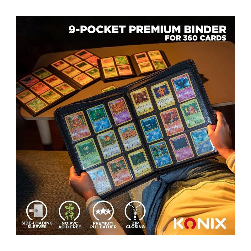Album Premium 360 cartes a collectionner - Konix - 9 pochettes 63 x 88 mm par page - Magic The Gathering, Pokémon, Yu-Gi-Oh! -